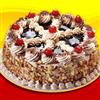 Esponjoso bizcochuelo de chocolate, relleno con un corte de dulce de leche y otro corte de crema de dulce de leche, decorado con crema de dulce de leche y chocolate charlotte con cerezas.